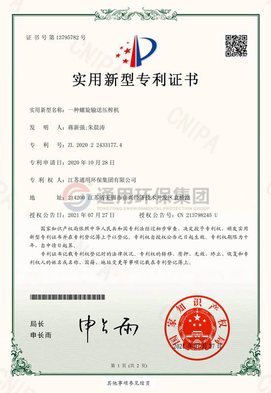 一种螺旋压榨机实用新型专利