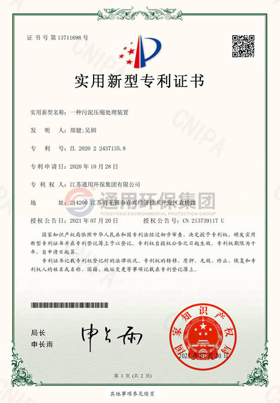 一种污泥压缩处理装置实用新型专利